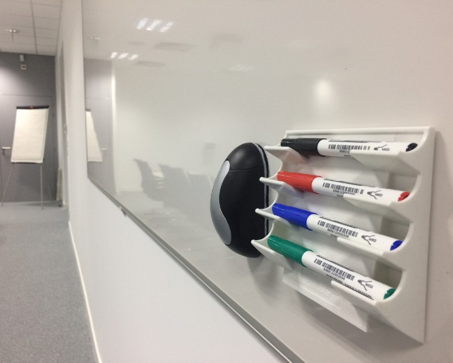 - Magnetinė lenta. Tai vienas iš dalykų, kurį šiandien turi bene visi šiuolaikiški biurai. Pateikti idėjas auditorijai gali būti daug patogiau ant valomos magnetinės lentos, nei ant didelio popieriaus lapo. Be to, linksmi piešinukai ant lentos ne susirinkimų metu gali padėti sukurti šiek tiek žaismingesnę ir linksmesnę nuotaiką darbe.