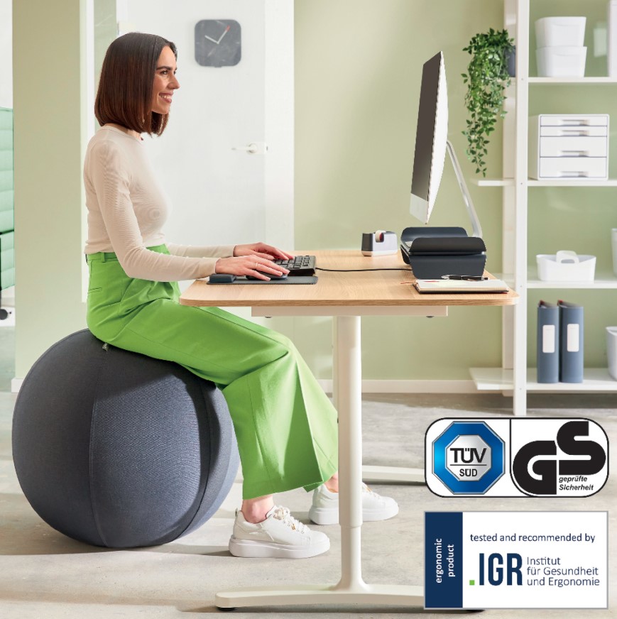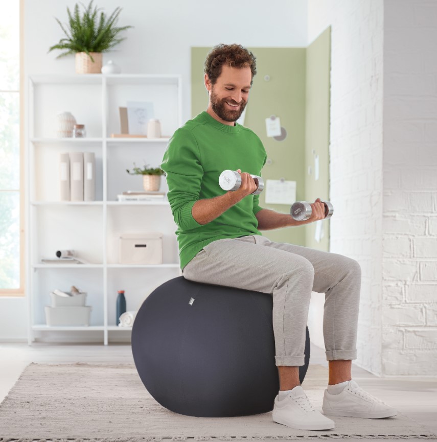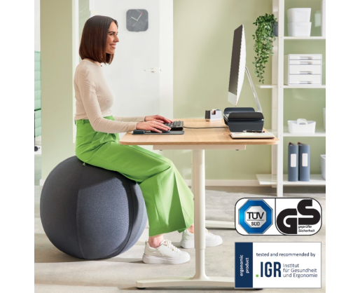 Stilingas ir ergonomiškas sėdėjimo kamuolys, idealiai tinkantis kaip papildoma sėdimoji vieta, kad galėtumėte judėti visą dieną.