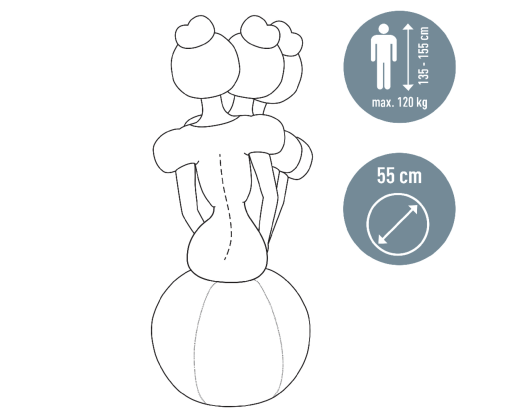 Kas 30 min. keiskite kamuolį ir kėdę, kad pagerintumėte laikyseną, lankstumą ir palengvintumėte nugaros skausmus. Įsitikinkite, kad kamuolys yra tinkamai pripūstas pagal instrukciją.