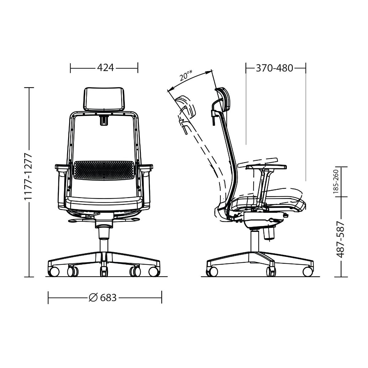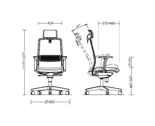 • Sėdynės plotis x gylis : 424 x 480mm