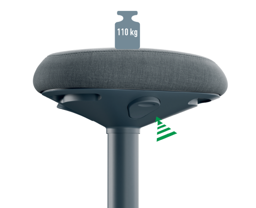 Sklandus ir lengvas pneumatinis 17 cm aukščio reguliavimo diapazonas (47–64 cm) paspaudus mygtuką po sėdyne, kad būtų pasiektas idealus sėdėjimo aukštis.
