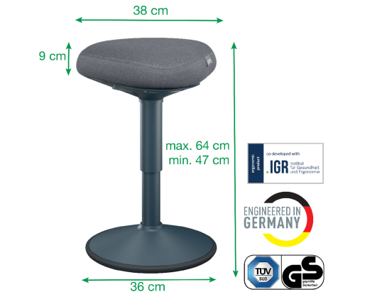 Sukurta kartu su Vokietijos sveikatos ir ergonomikos institutu IGR pagal DIN 26800 EN ISO 15537, atsižvelgiant į naudotojų ergonominį komfortą, sertifikuota TÜV ir GS saugos sertifikatais.