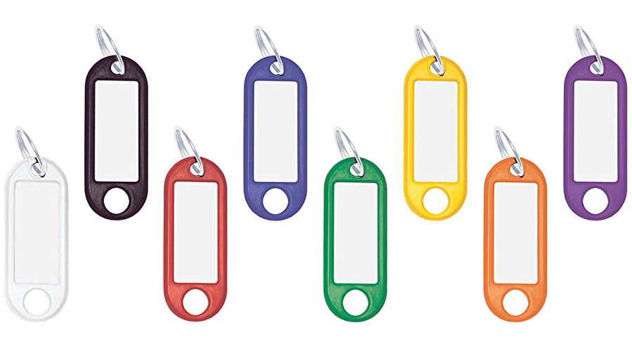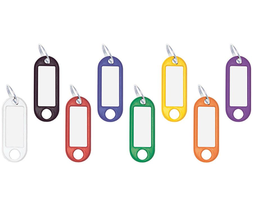 Plastikinis raktų pakabukas. Metalinis kabliukas. Įvairių spalvų. Pakuotėje 100 vnt.