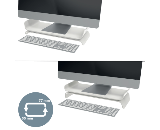 Galite pasirinkti iš dviejų aukščio nustatymų (55 mm / 77 mm) tiesiog apversdami monitoriaus stovą.