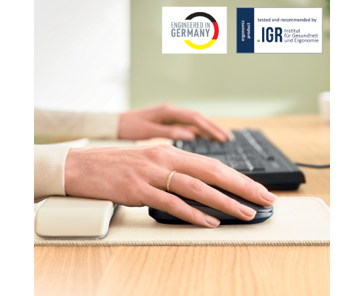 - Pelės kilimėlis Leitz Ergo su reguliuojama atrama riešui, pilkos spalvo
