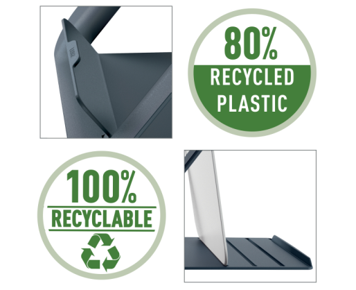 • Ergonomiškai suprojektuotas nešiojamojo kompiuterio stovas, užtikrinantis maksimalų komfortą jūsų darbo vietoje, pagamintas iš 80 % perdirbto plastiko. Produktą galima išardyti atskiriant metalines dalis nuo plastikinių, kad būtų galima 100% perdirbti.• Idealiai tinka dirbant sėdint arba stovint, siekiant gerinti bendrą sveikatą ir palaikyti aktyvų darbą;