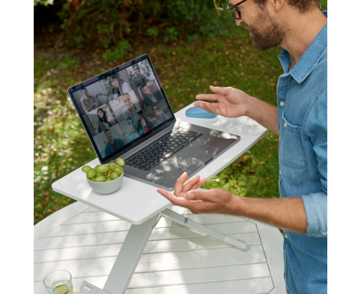 - Telpa nešiojamas kompiuteris ir pelė, todėl puikiai tinka per vaizdo konferencijas.