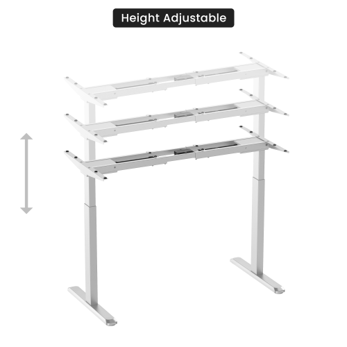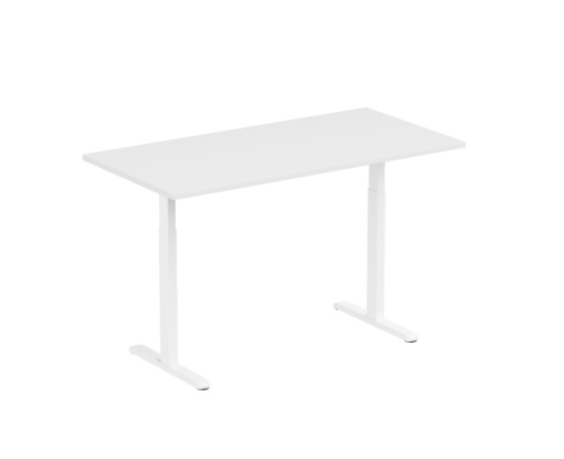 Reguliuojamo aukščio stalas Bjorn. Baltos spalvos stalviršis ir rėmas.