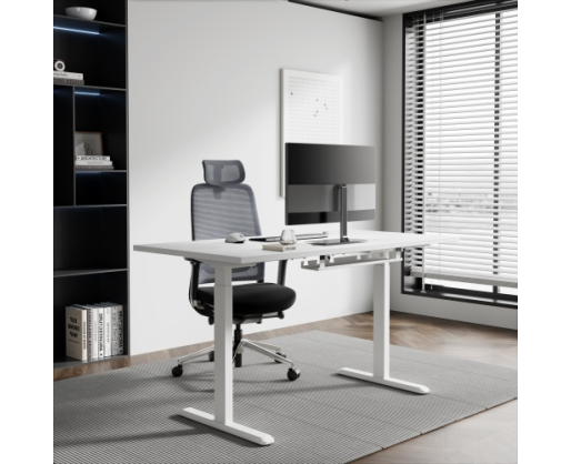 Reguliuojamo aukščio stalas BJORN, elektrinis, baltas rėmas, baltas stalviršis 150x75cm