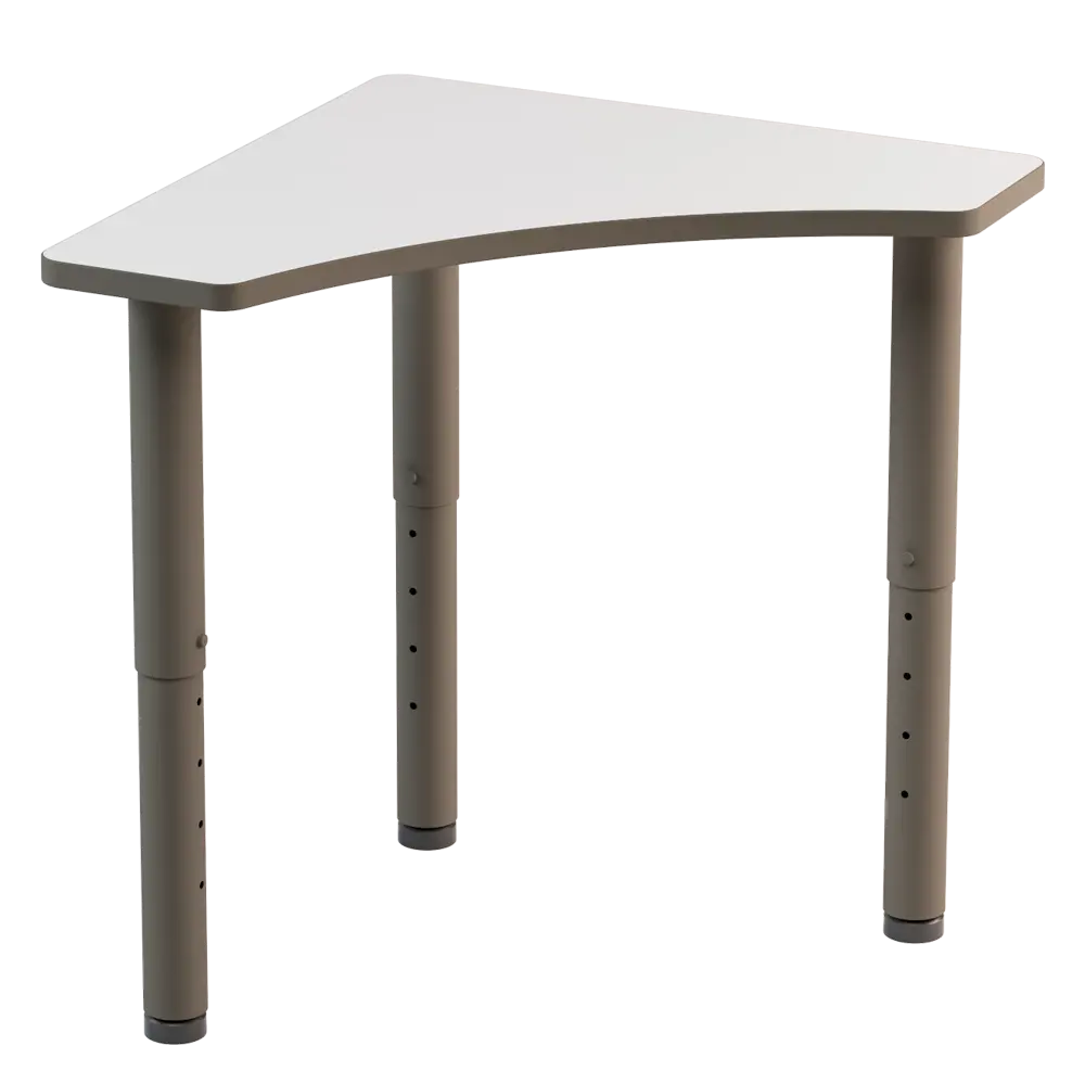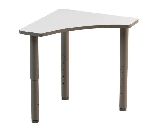 Šį ergononinį stalą galima naudoti indivualiai ar jungti į mudulinę kombinaciją iki 4 elementų. Medžiagos: 25 mm MDF plokštė su pilku poliuretano kantu. Rėmas iš Ø 65 mm plieninio vamzdžio. Reguliuojamas aukštis nuo 52 iki 76 cm. Galima užsakyti papildomai plastinį stalčių ir kabliuką kuprinei.