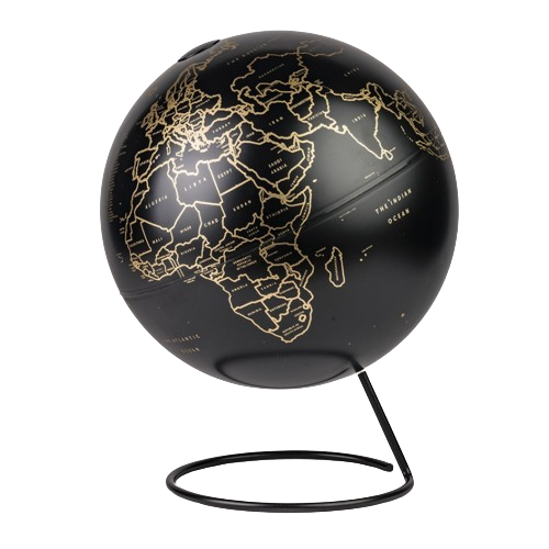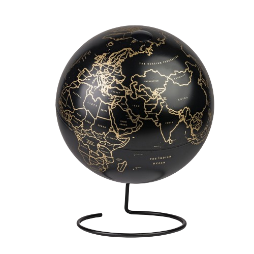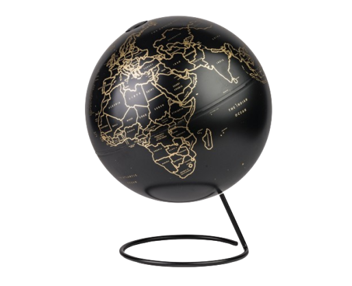 • Gaublys juodas su aukso spalvos žemėlapiu. Ant gaublio galima rašyti ar žymėti norimą informaciją su markeriais.