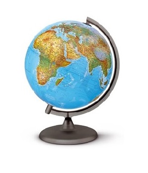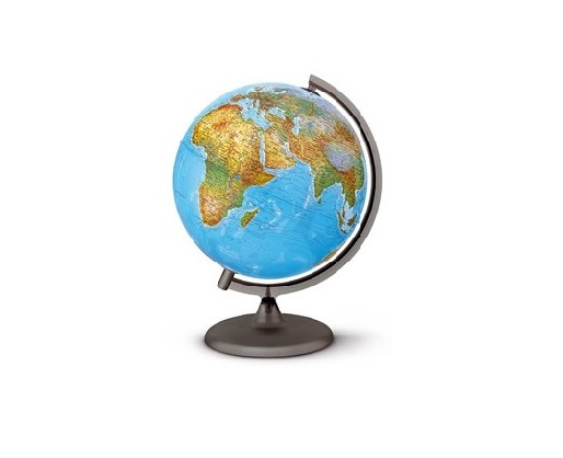 25cm skersmens gaublys - šviestuvas; įjungus šviestuvą fizinį žemėlapį pakeičia į politinį žemyno žemėlapį. Kartoninis, laminuotas paviršius; plastikinis stovas. Lietuvių kalba. Įpakuotas kartoninėje dėžutėje.