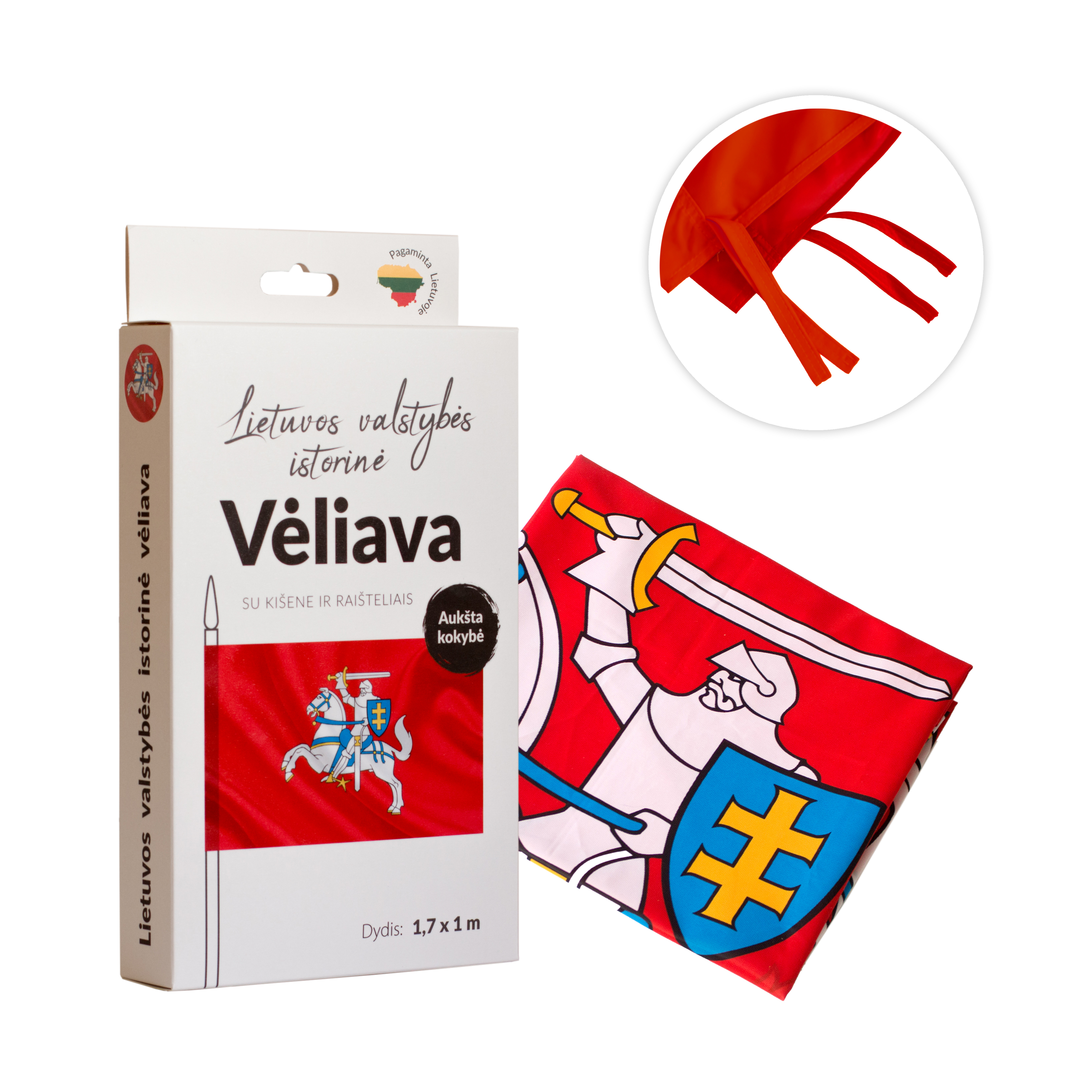- Lietuvos istorinė vėliava Vytis, 100x170cm, su kišene ir raišteliais