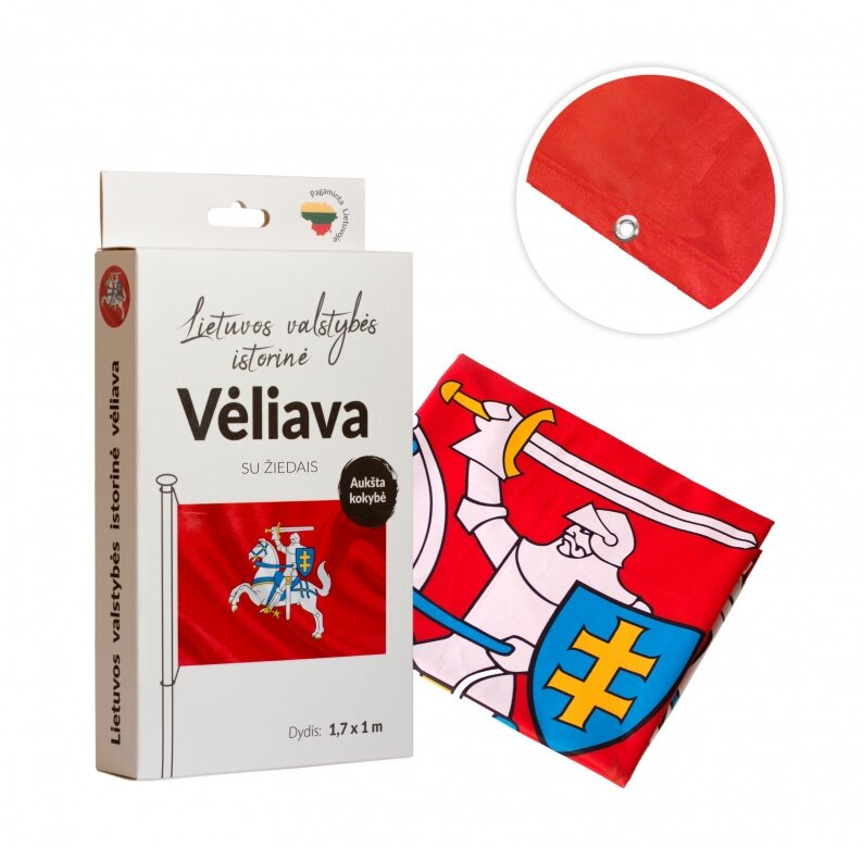 Čia galite įsigyti Lietuvos istorines vėliavas su žiedais. Vėliavos pagamintos pagal visus institucijų keliamus reikalavimus. Dėl kompiuterio ar telefonų įrenginių nustatymų, ekrane gali skirtis vėliavų atspalviai.