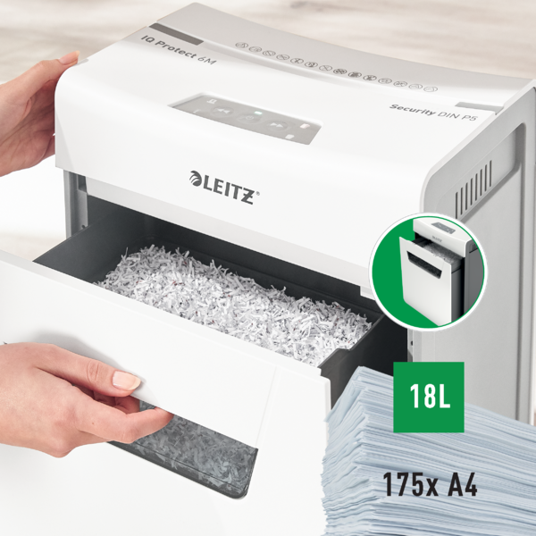 - Dokumentų naikiklis Leitz IQ Protect Premium 6M P5 6 lapai, 18 litrų šiukšliadėžė