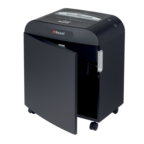 Didelio našumo dokumentų naikiklis Rexel RDX1850. Saugumo klasė P-3, šiukšliadėžės talpa - 50 litrų.