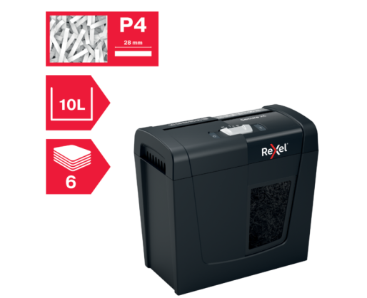 Dokumentų naikiklis REXEL Secure X6, P4, 6 lapai, 10 litrų šiukšliadėžė