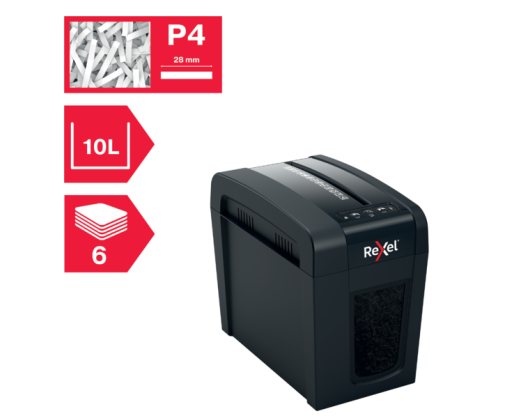 Dokumentų naikiklis REXEL Secure X6-SL, P4, 6 lapai, 10 litrų šiukšliadėžė