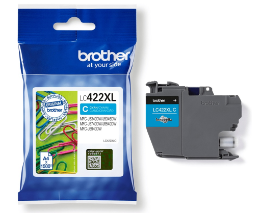 Rašalinė kasetė Brother LC422XLC Tinka spausdintuvams: Brother MFC-J5340DW/ 5340DWE Ecopro/ 5345DW/ 5740DW/ 6540DW/ 6540DWE/ 6590DW/ 6940DW Spalva: Žydra Resursas: 1.500~kopijųPrekės parametrai