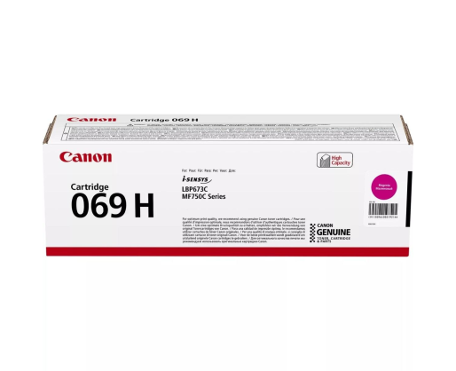 Lazerinė kasetė Canon 069H (5096C002) Tinka spausdintuvams: Canon i-SENSYS LBP673 Cdw/ MF750 Series/ MF752 Cdw/ MF754 Cdw Spalva: Purpurinė Resursas: 5.500 kopijųPrekės parametrai