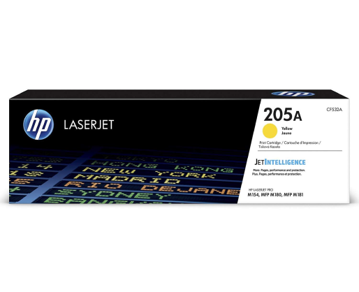 Kasetė lazerinė Hewlett-Packard No/ 205A (CF532A) Tinka spausdintuvams: HP Color LaserJet Pro M 154 nw/ Pro MFP M 180 fndw/ Pro MFP M 180 n/ Pro MFP M 181 fw Spalva: Geltona Resursas: 0.9KPrekės parametrai