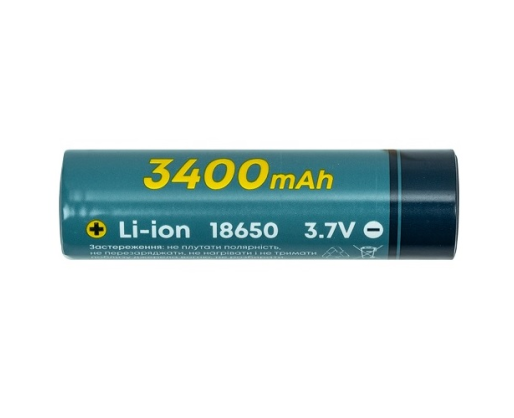 - Akumuliatorius 18650, 3.7V, 1C, 3400mAh