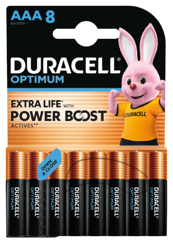- Baterijos DURACELL Optimum, AAA, 8 vnt.