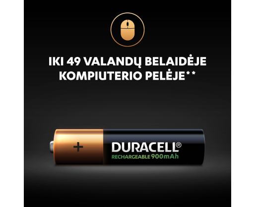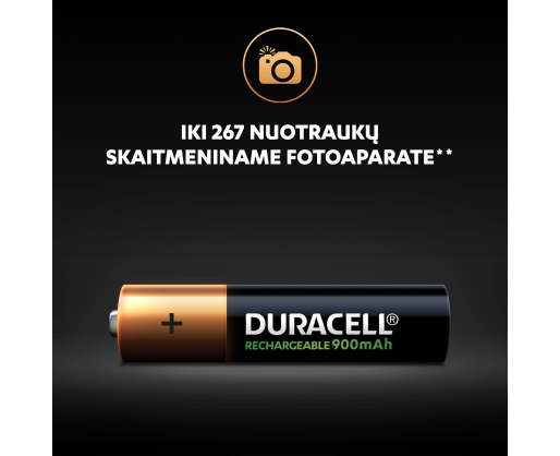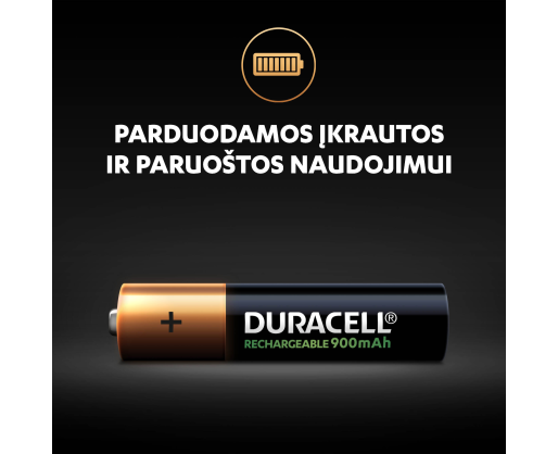 • „Duracell Recharge 900 mAh“ baterijos parduodamos įkrautos ir paruoštos naudoti.