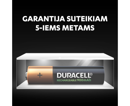 • Garantuojame, kad nenaudojamos „Duracell Recharge 900 mAh“ baterijos gali tarnauti 5 metus.