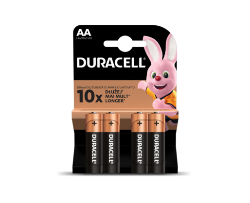- „Duracell“ šarminės AA baterijos, 4 baterijų pakuotė
