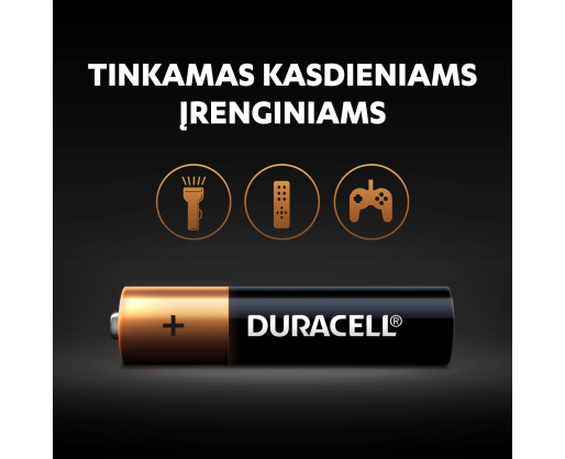 • „Duracell“ baterijos yra universalios šarminės baterijos, pritaikytos kasdieniams prietaisams.
