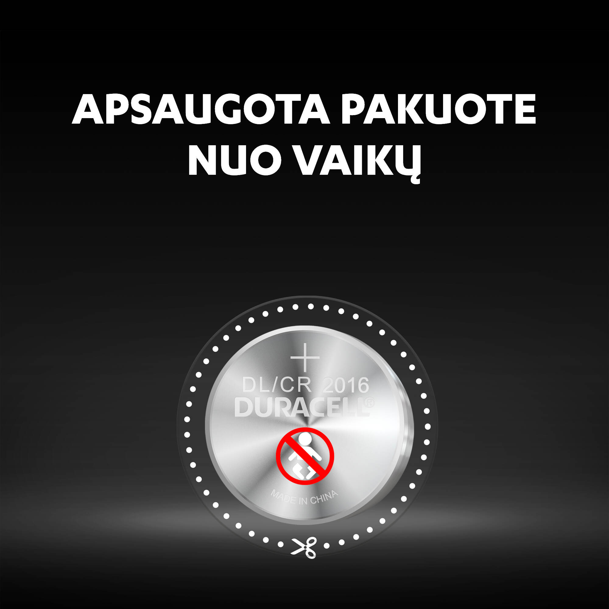 • „Duracell 2016“ ličio monetos tipo baterijoms naudojamas didelio grynumo lygio litis.