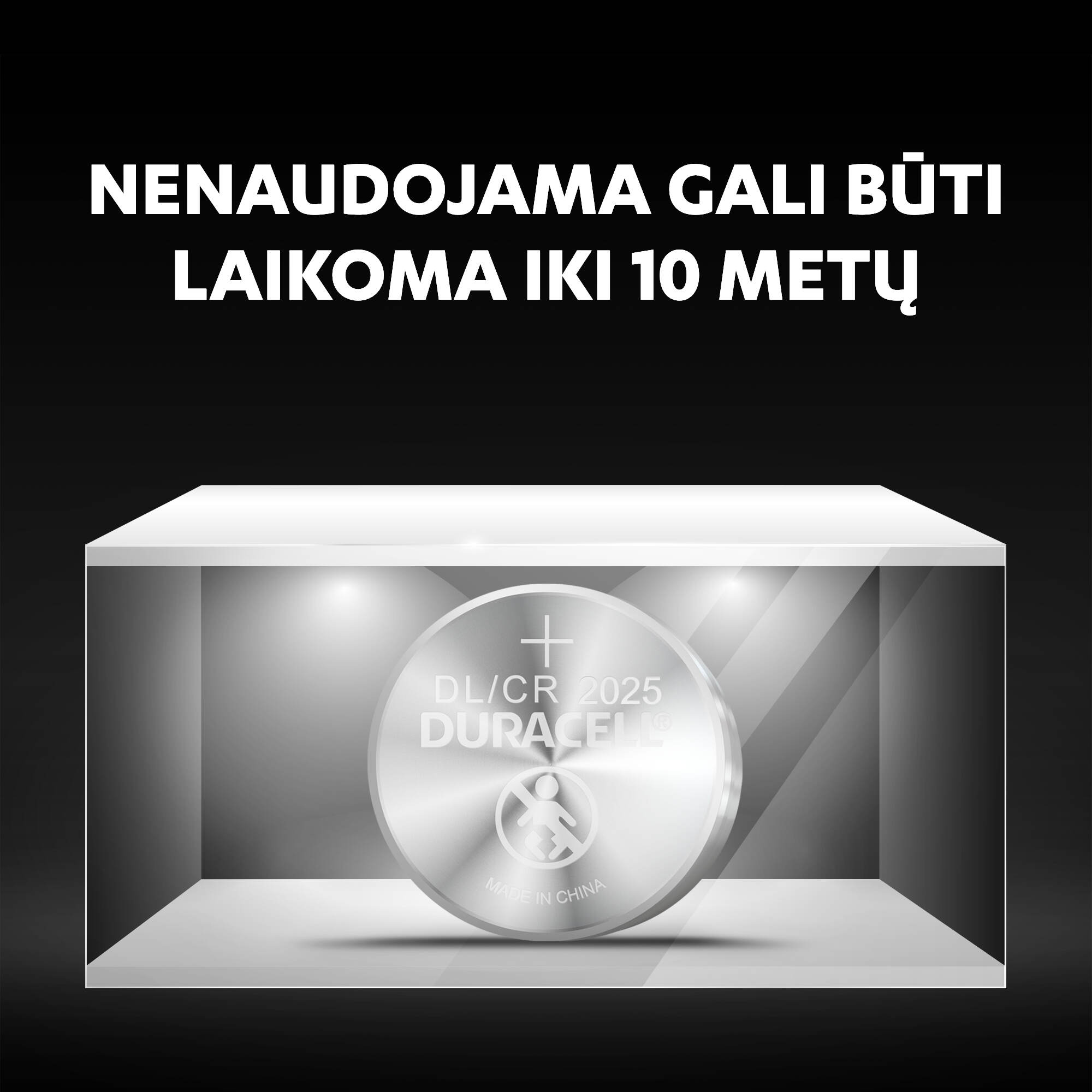 • „Duracell 2025“ ličio monetos tipo baterijoms naudojamas didelio grynumo lygio litis.