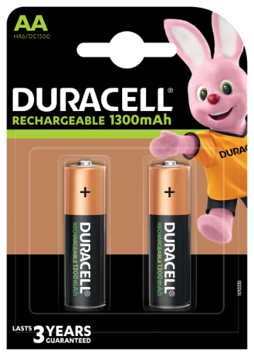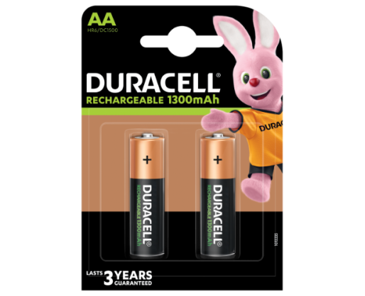 - Įkraunamos baterijos DURACELL AA 1300 mAh, 2 vnt