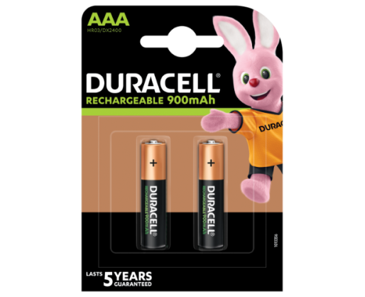 - Įkraunamos baterijos DURACELL AAA 900 mAh, 2 vnt