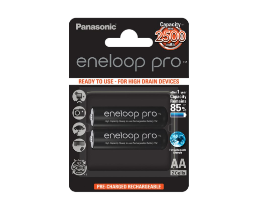 - Panasonic rechargeable batteries ENELOOP Pro BK-3HCDE/2BE, 2500 mAh, 500 (2xAA) Panaso...