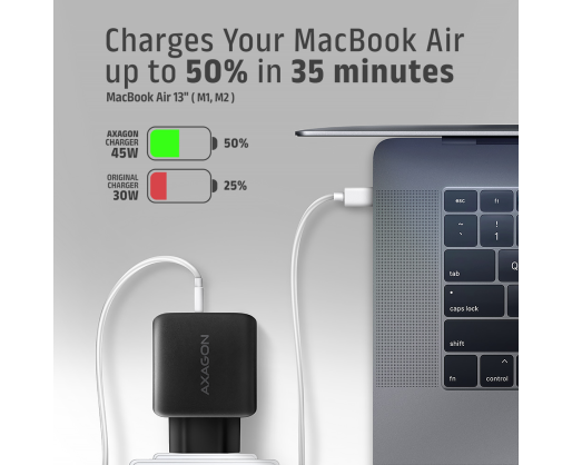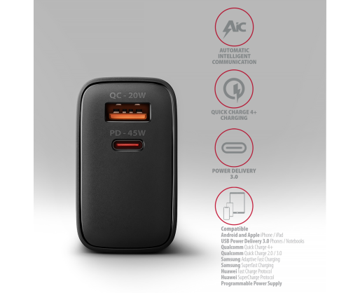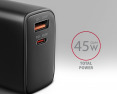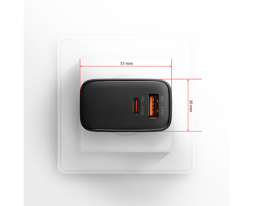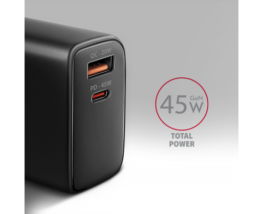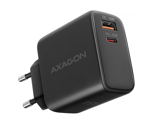 AXAGON GaN wallcharger 2x port (USB-A + USB-C), PD3.0/PPS/QC4+/SFC2.0/AFC/SCP/FCP/Apple, 45W | ACU-PQ45 464964