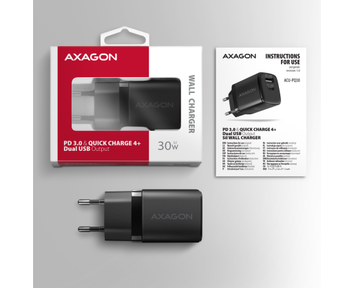 - AXAGON Sil wallcharger 2x port (USB-A + USB-C), 30W | ACU-PQ30 457169