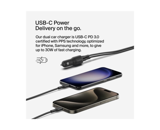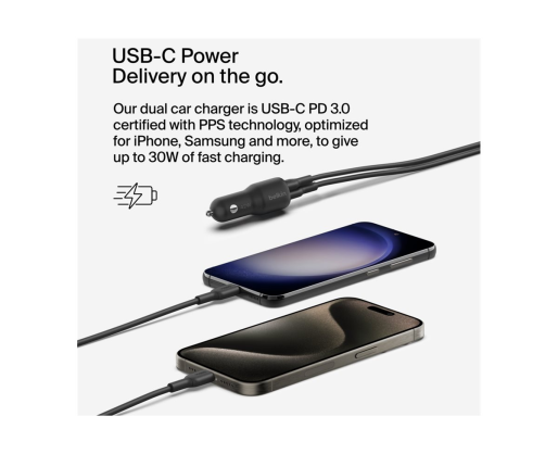 - BELKIN BOOST CHARGE 42w - 30w USB-C PD PPS + 12w USB-A Car Charger, Black | Belkin 447360