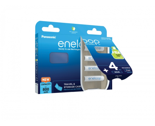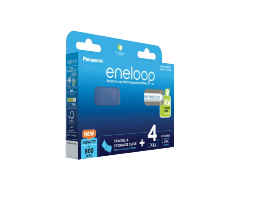 - Įkraunamos baterijos Panasonic ENELOOP BK-4MCDE/4CP+case, 800 mAh, 2100 (4xAAA)