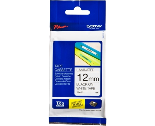 - Brother TZE-231 laminated tape black on white 12mm*8m