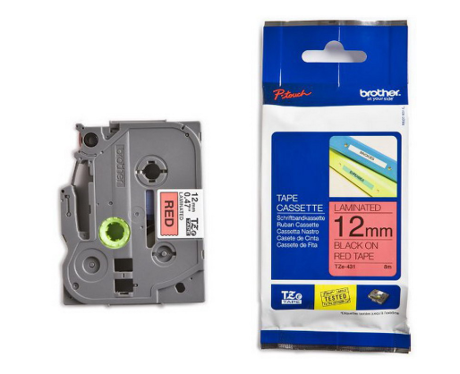 - Juostelė BROTHER TZ-431 (12mm. x 8m.) Juodai ant Raudono