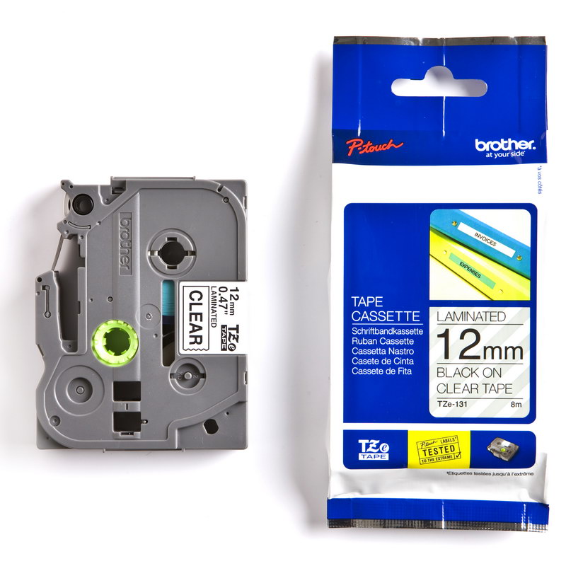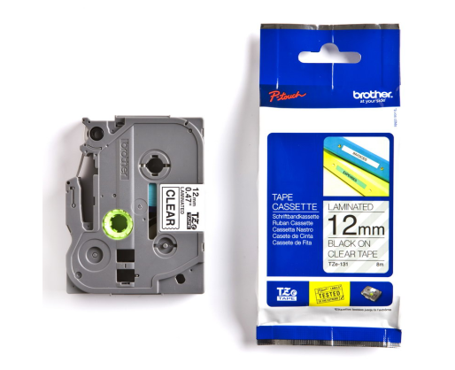 Juostelė BROTHER TZE-131, 12mmx8m, juodos raidės, skaidrus fonas