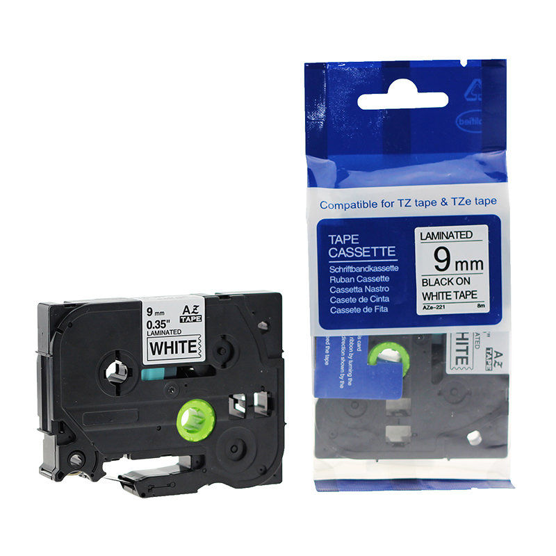 Juostelė BROTHER TZE-221, 9 mm x 8 m, juodos raidės, neorginaliPrekės parametrai