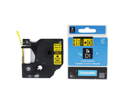 Neoriginali juostelė DYMO D1, 12mm x 7 m, juodai ant geltonamePrekės parametrai