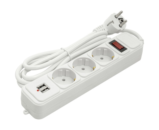- Buitinis ilgiklis 1.8m, 3 lizdai + 2 USB, su jungikliu