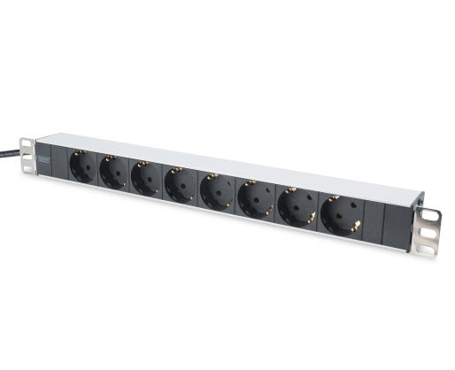 Digitus Aluminum outlet strip with 8 safety outlets DN-95401 Sockets quantity 8, 8x safety outlets 250VAC 50/60Hz / 16A / 4000W. Installation: Desktop, Rack 0U, Rack 1U 374430