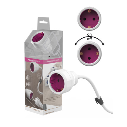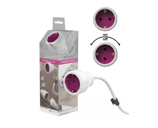PowerExtension tai ne tik paprastas 1 lizdo ilgiklis, tačiau jo kištukiniame lizde yra įmontuotas jungiklis, kuris įjungiamas/išjungiamas pasukant kištuką lizde.
