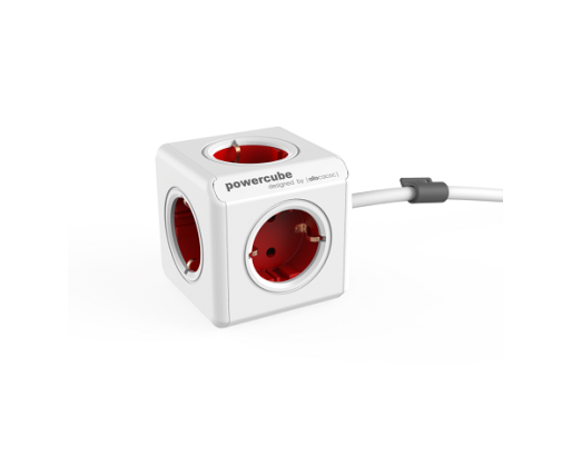 - Ilgiklis PowerCube Extended 5 lizdų, 3 metrų su raudonais lizdais