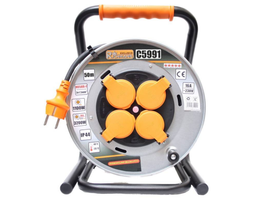 Profesionalus ilgiklis ritė. Pagrindiniai privalumai: Tvirta konstrukcija, kokybiškas gumuotas kabelis ilgam tarnavimui net abrazyvioje terpėje, fiksuotas centras, galima ilgiklį susukti ištempti neatjungiant prietaisų, IP44 apsauga nuo drėgmės.